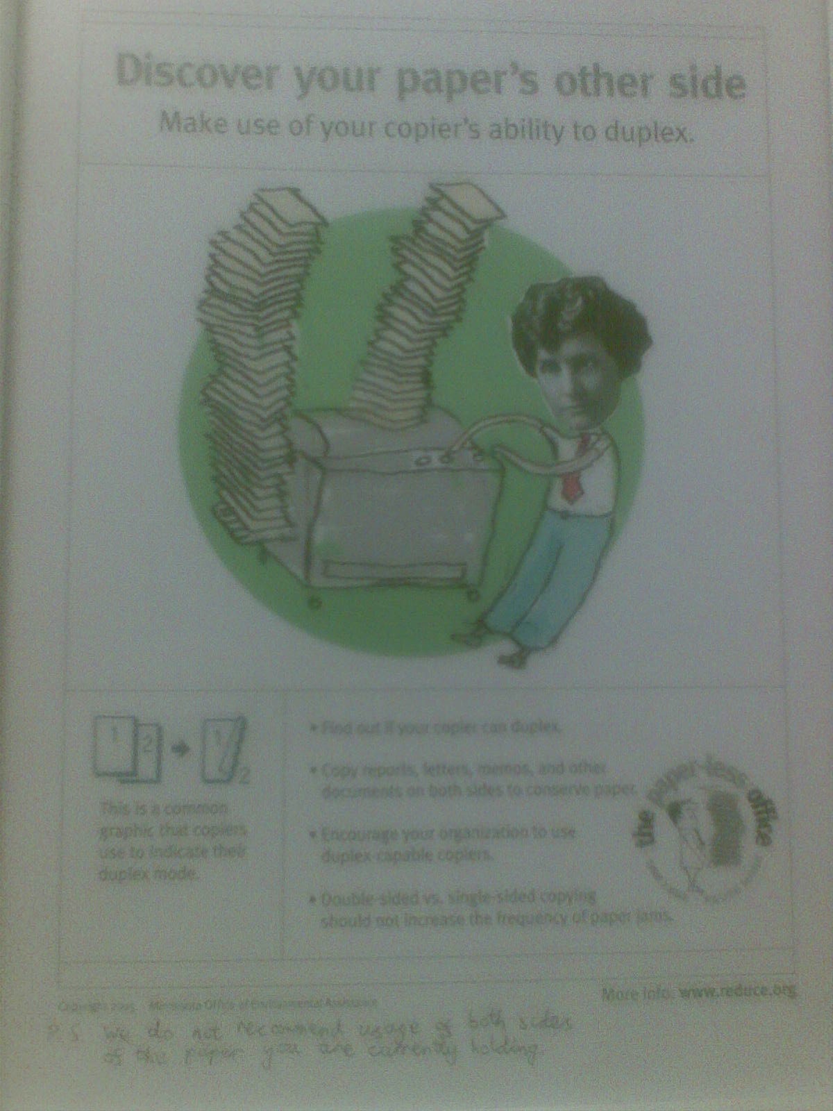 “Discover your paper’s other side. Make use of your copier’s ability to duplex.”