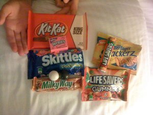 I had to buy this much candy from 7-11 to take our minds of gunshots and masked teenagers and screaming, terrified children.