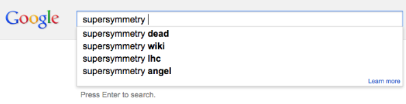 This problem is one of several in physics that come under the umbrella of “Naturalness”. Because we know the Higgs does not have a ridiculously enormous mass, there must be something that ‘cancels out’ the majority of the contributions from other particles. Various solutions to this problem have been suggested, the most popular of which is SUSY (SUper SYmmetry), which provides the cancellations by predicting an additional set of `super-partner’ particles with super-silly names like Wino, Stop and Squark. It is not uncommon to hear physicists in building 4 at CERN standing in their offices, pointing at the blackboard, shouting “squark, squark, squark!”. It is amusing, as long as you can’t see the desperation on their faces. Unfortunately, we have as of yet found no evidence of any supersymmetric particles, and it is looking increasingly likely that SUSY, a beautiful idea, may be just that.